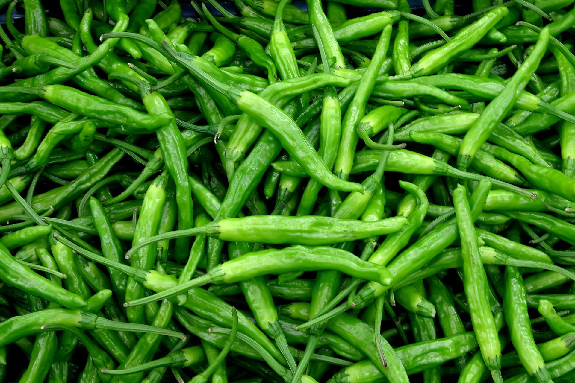 Boldly spicy, stout green chillies with a vibrant flavour; essential for adding a kick to curries, chutneys, and tadkas. Handle with care; store dry in the vegetable crisper.